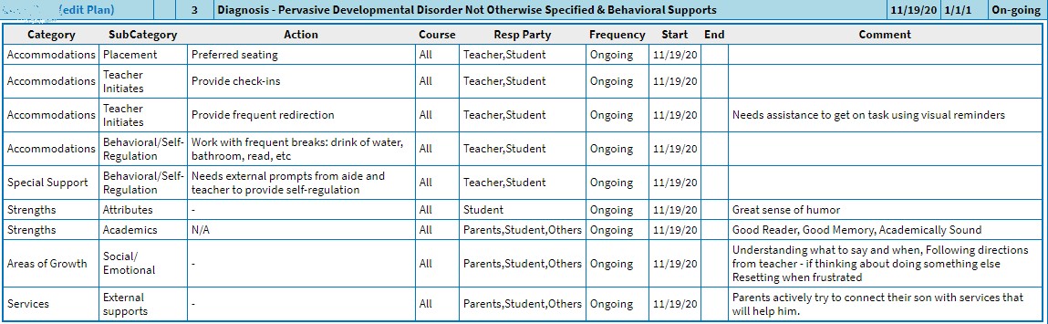 - Filter by school year to either see what supports their students had in prior years as well as confirm next year's plan.